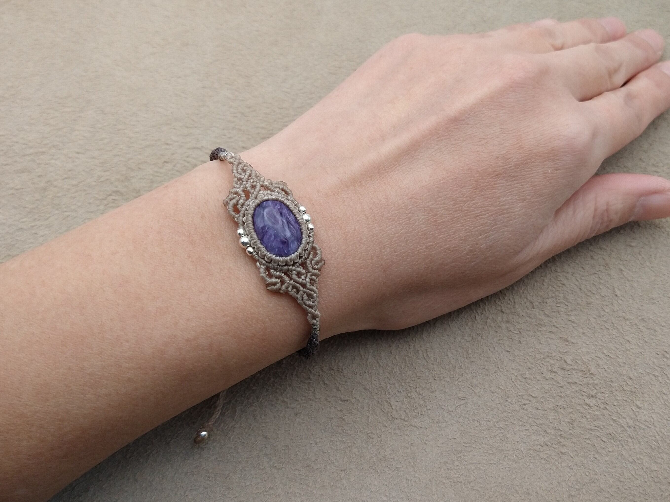 鮮やかな紫色をベースにマーブル模様が見られるとても上品なチャロアイトです。
